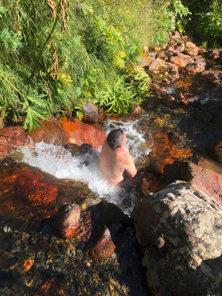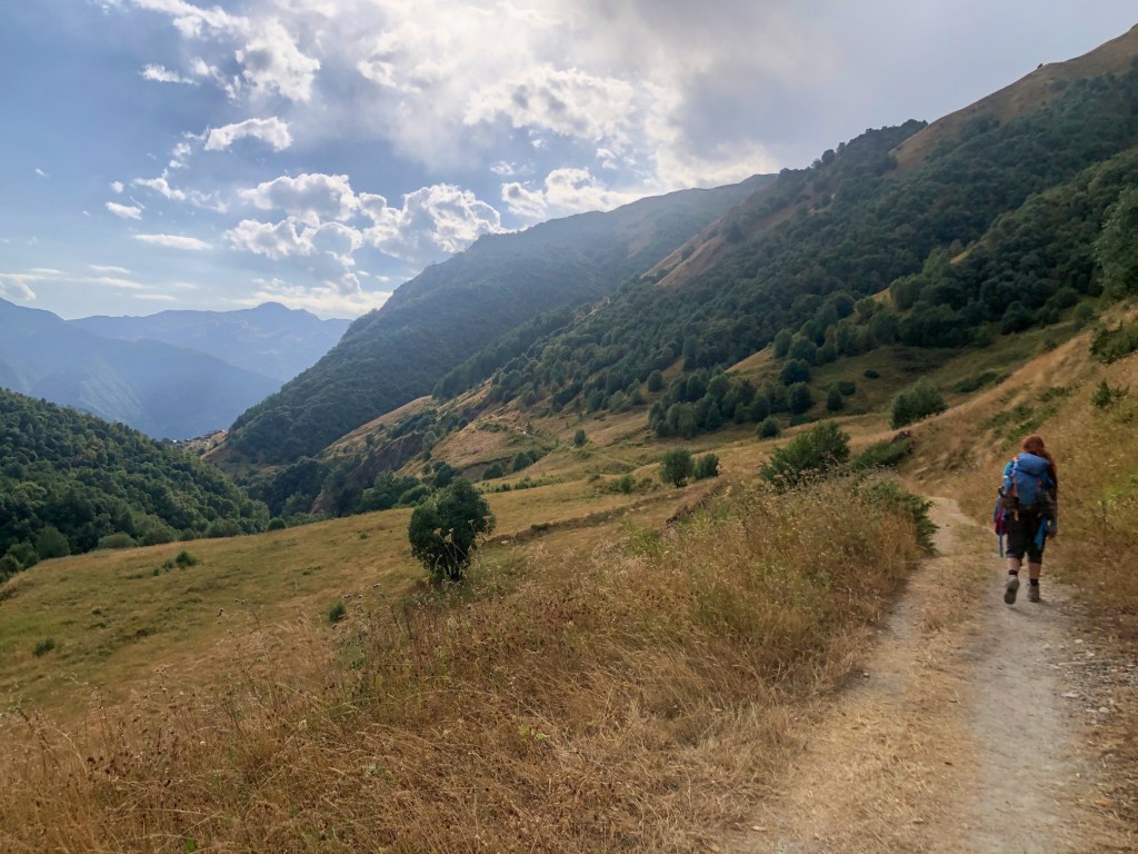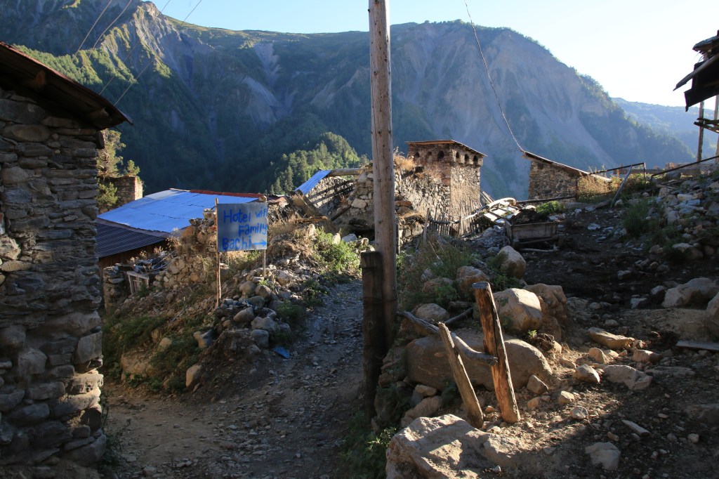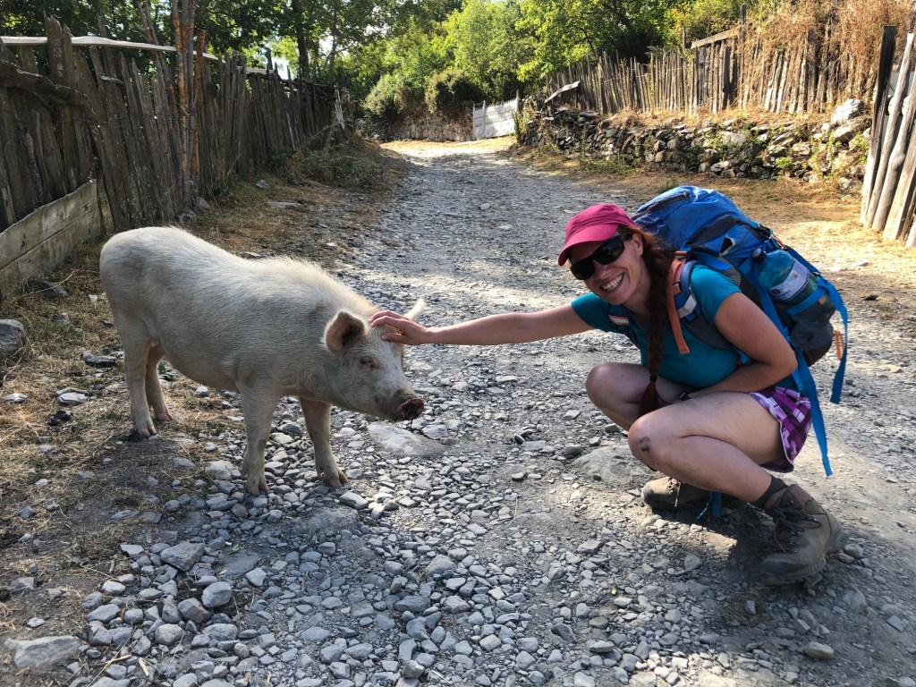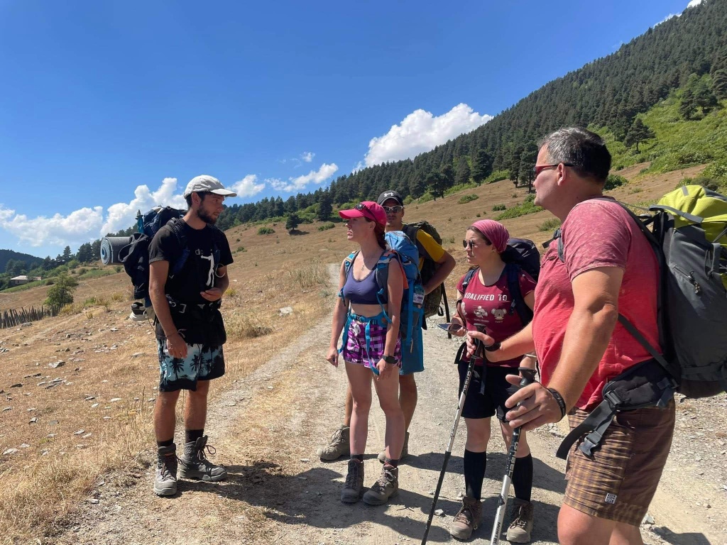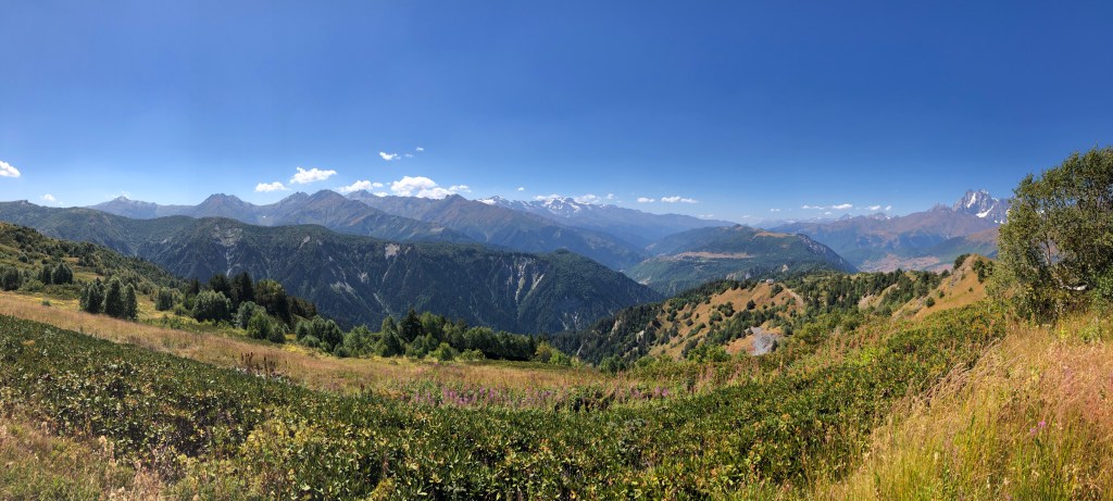 Brzy ráno vycházíme. Hned ze startu nás čeká dlouhé stoupání k místnímu lyžařskému středisku Ski Resort Tetnuldi. Podle mapy vypadá rozsáhle. Čtyři vleky nebo lanovky, z toho tři velmi dlouhé. Ve spodní stanici lanovky je několik hospod pro lyžaře, které z části fungují i přes léto. Akorát nás překvapilo, že jedna byla otevřená, ale vevnitř nebyl nikdo krom dvou dětí ve věku kolem 7 let, které se bavily tak, že shazovaly vysoké komíny kelímků na pivo 🙂 Po 10 minutách čekání se jich ptáme jestli tady mají rodiče, na což nám řeknou že ne. Chvíli čekáme a říkáme jim, že bysme si něco chtěli koupit. Z malých dětí se velice rychle stali hospodští. Prodali nám pivo, colu, dokonce zvládli uvařit kafe. Všechno společně spočítali a dokonce nás i skasírovali. Hleděli jsme 🙂 Pokračujeme dále do Adishi. Za lyžařským střediskem jsme nalezli další malé občerstvení – Tkharpel Hut Cafe, daleko od všeho, ale za to slušně vybavené. Vevnitř seděla postarší babička. Kolem byly postavené lavičky s nádherným výhledem na hory a hlavně zase tu Ushbu, kde jsme se s ní zároveň i rozloučili na delší dobu. O pár kilometrů dále nás na mapě zaujalo kempovací místo. Stará opuštěná a téměř spadnutá bouda, kde na stole bylo nádobí, vevnitř staré kamna – evidentně stará salaš. Hned vedle jsme našli parádní místo na koupání v ledovém potoce. Nedalo se toho nevyužít. Celá naše čtyřčlenná skupina tam nakonec vlezla a bylo to boží. Následující cesta nebyla s výhledy, ale v lese. Nicméně to bylo opravdu krásné a tahle část trasy se mi osobně velice moc líbila. Přicházíme do Adishi. Ač už i tady mají satelity, LTE, počítače, tak samotná vesnice vypadá jak z předminulého století. Pár domů je sice opraveno, ale velká část vesnice je opravdu stará, silnice a uličky mezi domy jsou plné dobytka, bahna nebo prachu a hoven. Ze sloupů s elektřinou jsou domy napojeny tak, že každému českému revizákovi stály vlasy hlavě hrůzou ještě za rok. Stejně tak elektroinstalace v domech je solidní punk a mnohdy i velmi jiskřivé a plamenné povahy. Ubytováváme se guesthousu Nino&Tarzan. Pohodové bydlení s pěkným výhledem na část vesnice a do údolí.