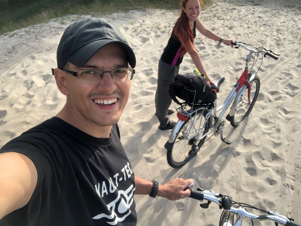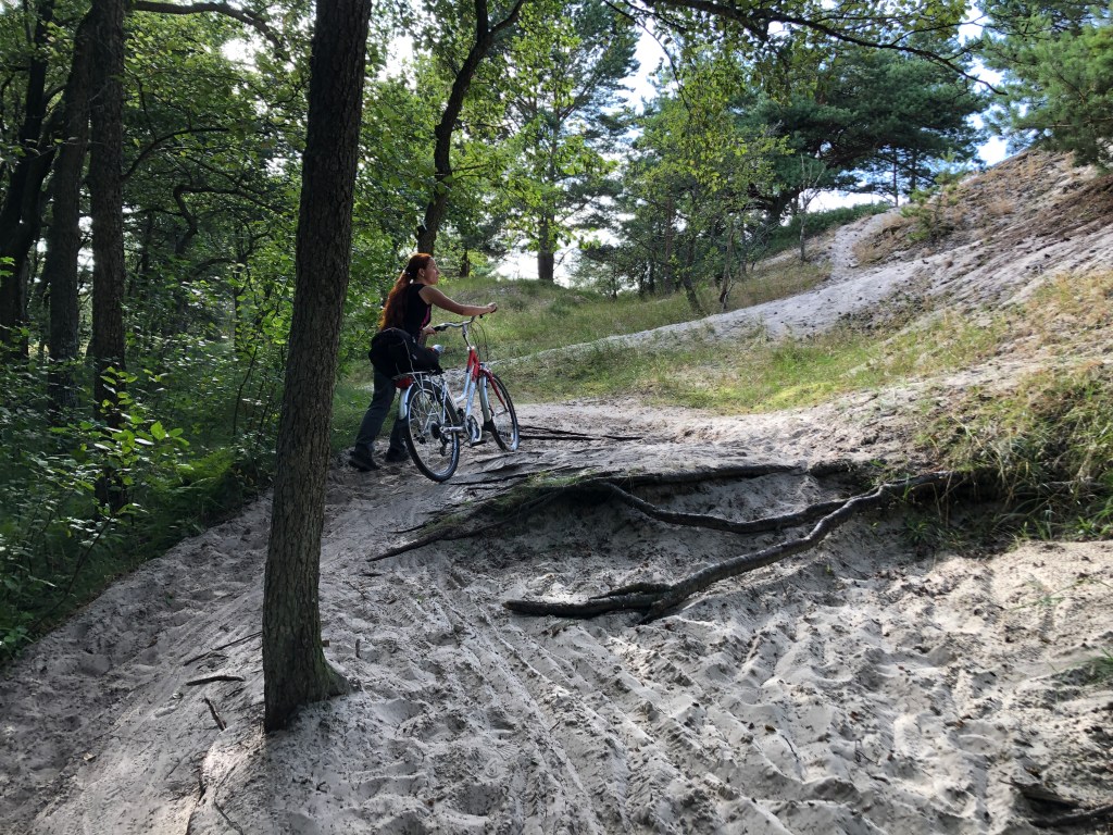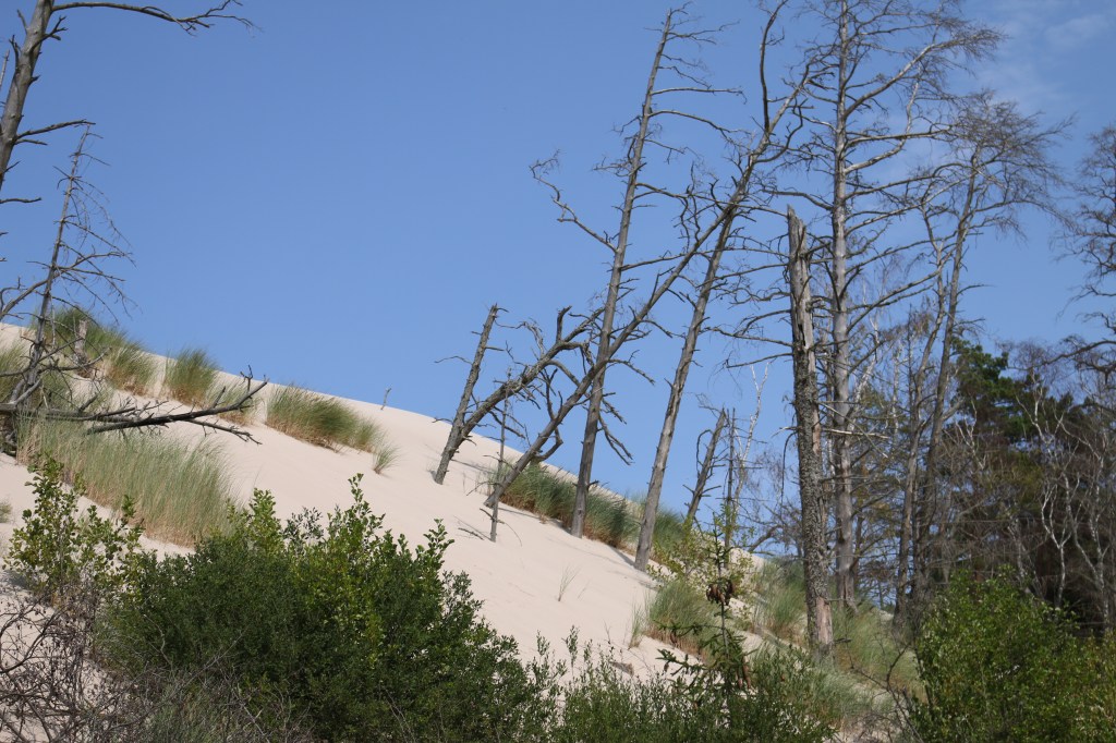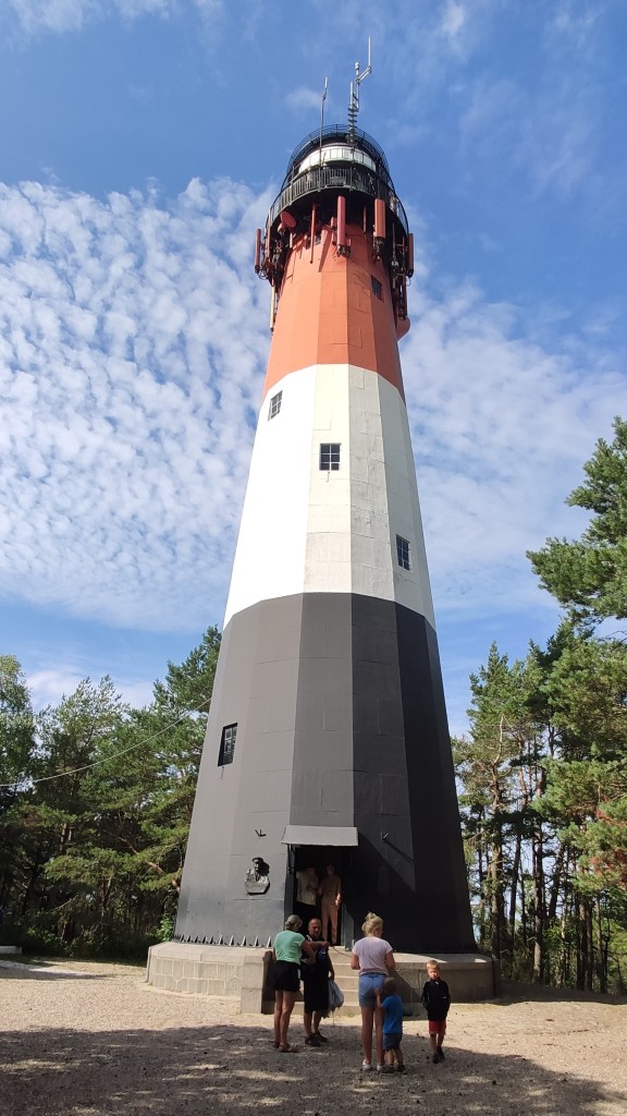 Podél baltského pobřeží je vybudovaná síť majáků. Navštívili jsme jeden z nich. Jednalo se maják Stilo u vesnice Osetnik, vzdálený asi 10 km východně od Leby. V Lebě existuje množství půjčoven kol, elektrokoloběžek a jiných přibližovadel. Vypůjčili jsme si tedy kola vyjeli na celodenní výlet. Projíždíme zapadnuté vesničky, převážně mimo hlavní silnice. Cestou se zastavujeme ve vesnici Sarbsk, která je známá především díky místnímu SeaParku, což je zábavní park a oceánarium a zároveň záchranná stanice Tuleňů. Nicméně tuhle atrakci míjíme a zastavuje v hospodůce Pod Siodłem, kde jsem si dal první nealko IPU v životě a nebyla vůbec špatná 🙂 K pivu si dáváme i polskou národní polévku – Žurek. Po polévce sedáme zase na kola a jedeme dále. Záhy se ztrácíme v lesích mezi Uliniou a Dymnicou. Chvíle bloudění nás zase navedla na správnou cestu. Po pár kilometrech dojíždíme do Osetniku, kde je vidět, že je to malé turistické centrum. Pár zahradních restaurací, zmrzlin, bufetů a obrovské parkoviště. Kola necháváme ve vesnici a k majáku jdeme pěšky. Osobně jsem tedy na žádném majáku nikdy nebyl, tak nevím co od toho čekat. Procházíme krásným borovým lesem, který celý stojí na písečně duně. Tím tady vznikají zajímavé úkazy a některé stromy tady skoro levitují ve vzduchu a můžete prolézat mezi jejími kořeny. Vstup na maják je zpoplatněn pár zlotkama, překvapuje nás první požadavek na použití respirátoru, který jsme v Polsku zažili. Ale později chápeme. Maják provozují důchodci pokročilého věku. Maják je pěkný, v každém patře je expozice o majácích na pobřeží Baltu, tak člověk pochopí lépe jejich provázanost. Dostáváme se až na vyhlídku odkud je opravdu pozoruhodný výhled. Jen škoda, že je odpolední opar, jinak by šlo vidět opravdu velmi daleko. V dálce vidíme Łebu, která je asi 12 km vzdálená. Celou vzdálenost pokrývají písečné duny pokryté borovými lesy. Tudy povede naše cesta zpět. Jen doufáme, že se nebudeme s koly v písku moc bořit. Při pohledu na druhou stranu je borový les tak velký, že na obzoru splývá s mořem. Díky výšce rozhledny, ale i umístění na kopci je daleký výhled na moře, kde vidíme několik opravdu obrovských lodí. Po výhledech a focení jdeme dolů do vesnice pro kola. Mapa ukazuje, že naše trasa je dokonce cyklostezka – paráda. Písku jsme se, až na výjimky, obávali zbytečně. Narazili jsme jen na jeden asi padesátimetrový úsek, kde jsme se brodili pískem. Zdejší les nás naprosto uchvátil. Nevím v čem byl jiný, ale byl neuvěřitelně hezký, až pohádkový. Borový les s pískovým podložím a světlou hlínou, na které rostla tráva, lány borůvek a listnané keře. Opravdu velice zajímavé složení rostlin. Celek lesa zde ponechali přírodě, takže to byl občasný tělocvik stylu přelez, podlez s koly přes popadané stromy. Těch 12 kilometrů bylo neskutečným relaxem v naprosto tiché, nádherné a nedotčené přírodě.