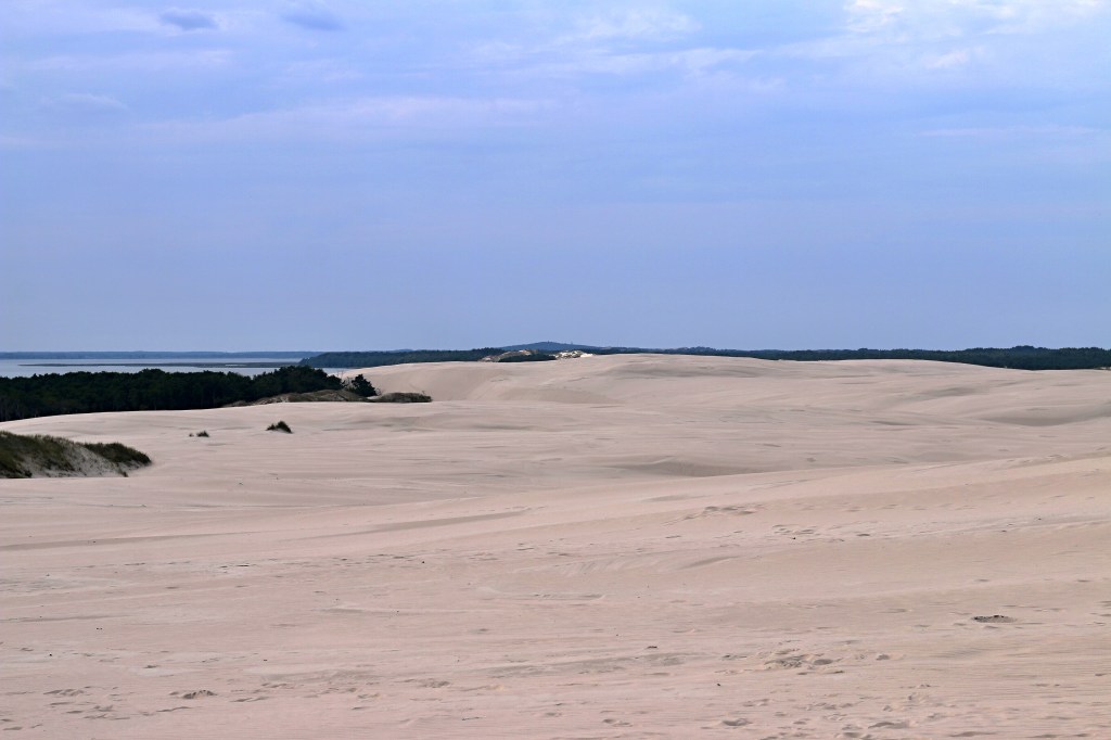 Nejznámější a největší tahák pro Lebu jsou pohyblivé písečné duny, které jsou součástí místního Slowińského národního parku. Duny patří k největším v Evropě. Ač naprostá vetšina je v přísném režimu ochrany a je zde zakázaný vstup, tak i ta přístupná a viditelná část, vám dá pocit, že jste na Sahaře a ne na severu Polska. Očekával jsem, že to bude velké, ale tohle je obrovské. Duny se nacházejí asi 7 kilometrů od Leby. Dostat se zde dá pěšky, na kole nebo Melexem, což je malý otevřený elektrobus. 2 km od Leby se nachází osada Rabka, kde se platí vstup do Slowińského národního parku, 7 zl za osobu. Odsud to jsou asi další 4 km. Zde můžete jet zase dalším Melexem, ale za mnohem dráž než jinde, a i přesto vás bude čekat ještě asi 1.5 kilometru pěšky. Čím budete blíže dunám, tím více bude písku přibývat v okolí a až začnete stoupat nahoru, víte, že jste na místě. Nezdá se to, ale chůze po písku je opravdu náročná. Díky rozhlehlosti dun je to docela makačka si to projít celé. Duna je ohraničená na místa pro turisty a nepřistupné části. Potom co vystoupáte na vrchol duny, uvidíte zbytek písečného lánu, který mizí v dálce. Přístupná část pro turisty má asi 1000×350 metrů, ale samotná duna má cca 4×1 kilometr. Na nejvyšším bodě je hezký výhled okolí. Moře, duny, jezero, borové lesy – to je rychlý výčet výhledu. Na samotné duně je k vidění, krom spousty písku a lidí i mrtvý les, který vznikl postupným zasypáním a odumřením stromů. Zajímavostí je, že jsou všechny stromy vychýleny směrem do vnitrozemí, což způsobuje neutichající vítr vanoucí od moře. Největší duna během několika století urazila obrovský kus cesty, pohltila jednu rybářskou vesnici, která je aktuálně několik metrů pod povrchem. Zhruba za 600 let čeká podobný osud i Lebu. Dunu jsme navštívili v parný letní den, kdy bylo asi 30 stupňů. Nahřátý písek opravdu peče, není zde kousek stínu a každý krok je zde namáhavý stejně jako když jdete v hlubokém sněhu. Za hodinu jsme byli docela slušně vysílení a to jsme na písku ušli možná kilometr a půl. Cesta zpátky vede stejnou trasou, popř. druhá alternativa je pěšky po pobřeží až do Leby, což rozhodně doporučuju. Měl jsem trochu obavy, jestli tak dlouhá cesta pískem nebude sebevražda, ale naštěstí kolem moře je písek tvrdý jako beton a pobřeží je zde opravdu nádherné. Zhruba v ⅓ cesty je malá odbočka k muzeu odpaliště raket. Je to malá základna vybudovaná Němci během druhé světové války, kde probíhal výzkum a testy raket V1 a V2.