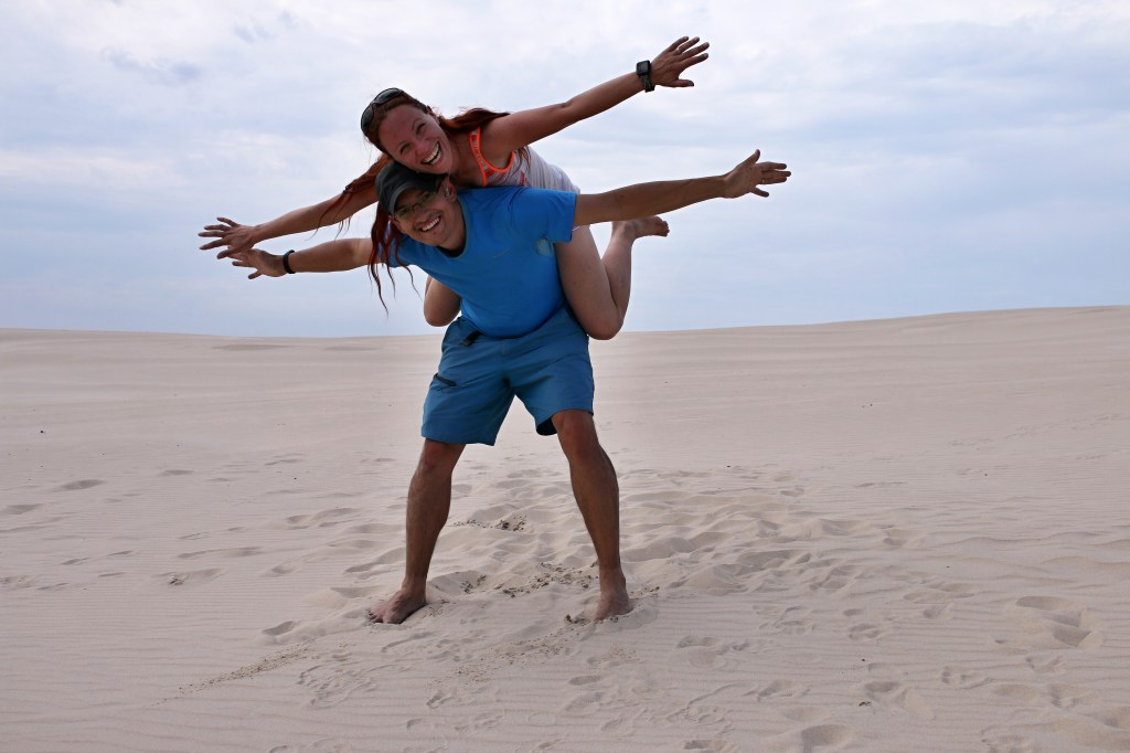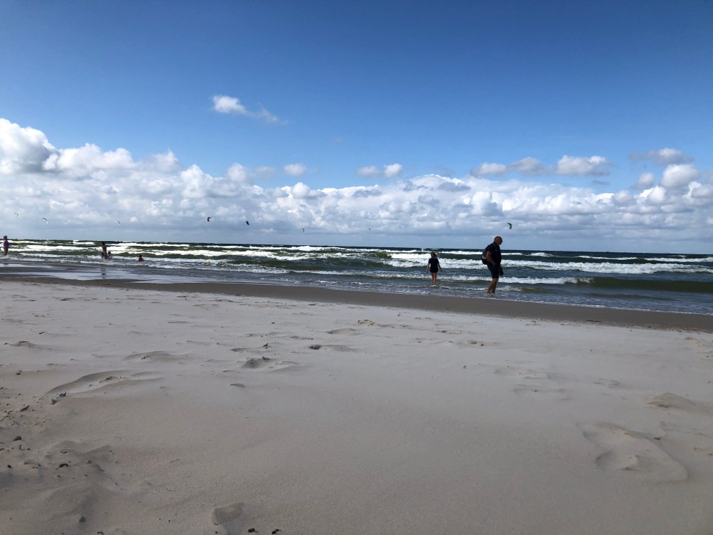 Začnu od konce. Počasí. My jsme měli asi docela štěstí. Internetové počasí hlásilo kolem 20 stupňů a jeden den 25 stupňů. U moře to odpovídalo, ale mimo něj bylo parno a pocitově v ty chladnější dny bylo cca 23 stupňů a ten teplější kolem 28-30 stupňů. Pokud člověk není úplně zmrzlina, tak se dalo koupat každý den. U moře bylo 20 stupňů, ale bylo to větrem. Slunce peklo o 106 – to šlo vidět na spálených lidech. Proti větru u moře se chrání “větrolamy”, které nabízí zdarma na zapůjčení většina ubytování nebo se dají koupit snad v každém obchodě. Což není nic jiného, než látka široká asi 80 cm a dlouhá od 3 do 15 metrů s dřevěnými kolíky, které zapíchnete do písku. Takhle schovaná před větrem a létajícím pískem, tráví čas na pláži naprostá většina lidí. Teplota vody se v létě pohybuje kolem 19-21 stupňů. Někdo říká, že to je studené, já říkám, že to je osvěžující. Když je člověk trochu otužilý dá se koupat i ve 20 stupních, při 40 km/h větru. Když se pak zaleze za větrolam, tak slunce přijemně hřeje 🙂