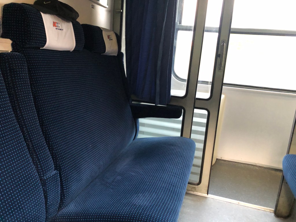 Vlak do Leby je, krom jednoho vozu, vybaven kupé vagóny. Ten jeden vůz je lůžkový. Škoda, že jich není více. K samotnému vlaku. Vagóny polského dopravce PKP jsou částečně renovované starší typy. Kupé jsou osmimístná, takže místa zde není mnoho, nohy si nenatáhnete. Sedadla jsou pohodlné, ale nejdou sklopit, složit, přizpůsobit, takže jedete celou noc v sedě, za předpokladu že máte plné kupé, což je v tomhle vlaku dost pravděpodobné. Na luxus vlaků u nás, typu rozvážená kávička s bagetami, Wi-Fi nebo 230V zásuvky rovnou zapomeňte. Záchody byly kupodivu celou cestu v docela slušném stavu. Papír byl, voda tekla, mýdlo bylo, WCko splachovalo. Z Bohumína odjíždí každý den vlak v 7 hodin večer. Vlak je rozdělen na dvě části, které se rozpojí v Gdyni. Polovina jede do Leby, druhá polovina na poloostrov Hel. Do Leby vlak přijíždí cca o půl 9 ráno, na Hel o zhruba hodinku dříve.