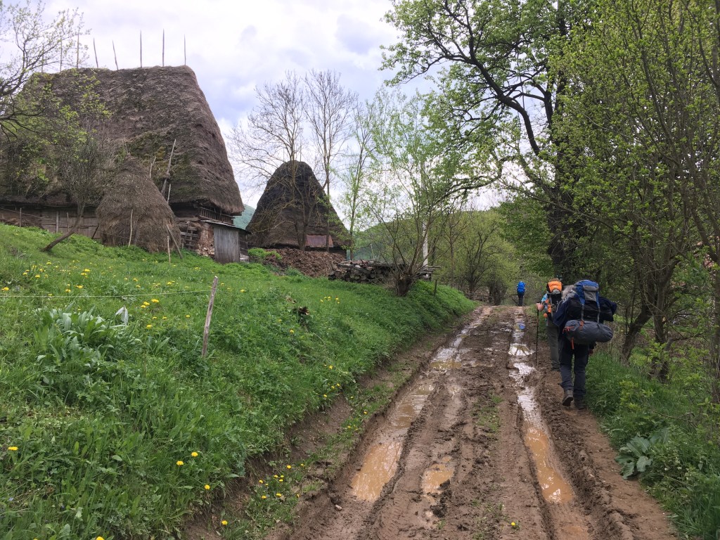 Pršelo celou noc, ale nad ránem déšť ustal. Původně naše cesta vedla přes Rametskou soutěsku ke kláštěru Ramet. Ta se dá projít dvěma způsoby. Po dně řekou, nebo po jištěných stezkách po skále. Vzhledem k tomu, že díky dešti se hladina řeky zvedla a že s krosnama na mokré skále 30 metrů nad zemí by to byl taky risk, tak jsme vymysleli náhradní plán a to ten, že pokud se počasí umoudří, tak soutěsku obejdeme z jihu po modré a žluté stezce a dojdeme ke klášteru. Anebo, v případě špatného počasí, dojdeme do vesnice Modolesti, odkud se necháme taxíkem odvézt k autu. Vyrážíme z Cheii do prudkého stoupání. V polovině kopce potkáváme stádo krav, to bylo asi to, co nám mělo rozšlapat stany. Krávy jsou fakt dobytek a od této chvíle začíná být cesta peklo. Turistická cesta je rozšlapaná od krav, a díky dešti je tam po kotníky směs bahna a kravích hoven. V tomto duchu je celá cesta až za vesnici Dealu Geoagiului, kde nás chytne průtrž mračen. Schováváme se pod malou stříšku, takže napůl mokneme a napůl jsme v suchu. Déšť neustává, tak musíme vyrazit. Pokračujeme v dešti. Cesta naštěstí už jde jen dolů a tak se rychle blížíme do Modolesti. Po pár hodinách, promočení usedáme v místní putice a lejeme do sebe kořalku na zahřátí. Volám taxi, které nás přivezlo na začátek trasy. Říkám, že jsme v Modolesti, borec ať mu na Whatsapp raději pošlu přesně polohu. No jo, jenže v té díře mezi kopci a skalami byl sotva signál na hovor, natož nějaký internet. Chvílema se dal chytit GPRS 🙂 Volám, že nemám internet, takže mu název vesnice pošlu do zprávy. Čekáme, hodinu, čekáme dvě hodiny. Potom telefon, že je v té vesnici, ale nemůže nás najít. My ho taky nevidíme. Nějak nechápeme jak se to může stát, vesnice je totiž velká asi jako průměrná česká zahrada 🙂 Nakonec se ho ptám, kterým směrem jel, a on, že od Aiudu na sever. Začal jsem tušit, že je zle. Podle mapy jsme zjistili, že je ve vesnici Moldovenesti, cca 70 km od nás. Říkal, ať počkáme, že přijede. 70 km se může zdát jako hoďka cesty, ale ne v Rumunsku do zapadlých vesnic, kde vede polní cesta, na níž se dá jet maximálně 20-30 km/h. Za dvě hodinky je u nás. K překvapení všech nepřijel v Dacii Logan, ale ve dvojkovém SuperBu v plné palbě. Ideálka pro hromadu špinavých lidí, kteří dva dny spali venku, zmokli a po kotníky se bořili do bahna a kravích hoven. Ale nabral nás a odvezl nás. Za cestu si řekl o pět euro navíc, za tu zajížďku. Ale dali jsme mu to rádi, protože vůbec někdo dojel a odvezl nás. Necháváme se vyhodit u penzionu, kde jsme bydleli předtím. Tam nám ale říkají, že mají plno, že je ve městě nějaký festival, takže se bojí, že neseženeme ubytování ani jinde. A opravdu. Startuju booking a nejbližší levné ubytování nacházím na benzince v motelu. Recenze žádná sláva, ale po dvou dnech v dešti, zimě a bahnu jsme si všichni chtěli dát sprchu a hlavně vysušit věci. Oproti recenzím vypadá motel dobře. Bohužel naše postel byla jako jáma mravkolva – ať si lehnete kamkoliv, vždycky se skutálíte doprostřed postele 😀 Další fajn scény nastávájí ve sprchách. Takový mechanismus na zapínání vody jsem v životě neviděl a evidentně ani ostatní. Až nás zachránil Bobo, který to znal a udělal nám rychlé školení. Pak už nebyla překážka k teplé sprše. Konečně.