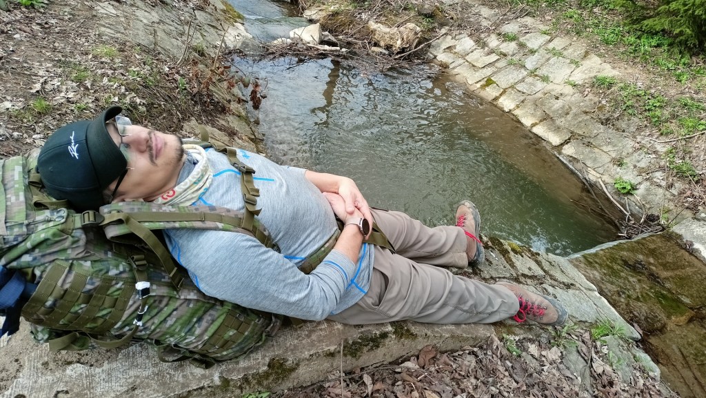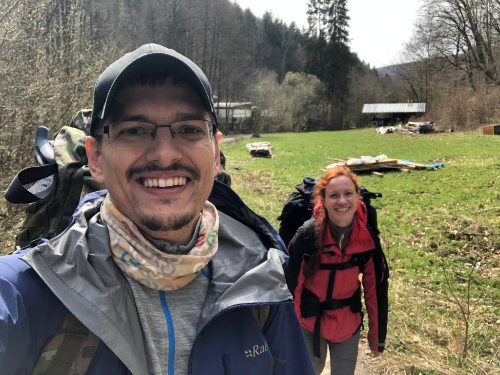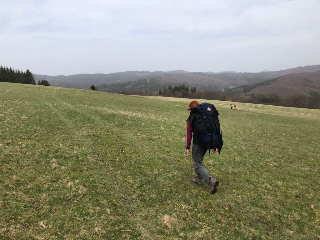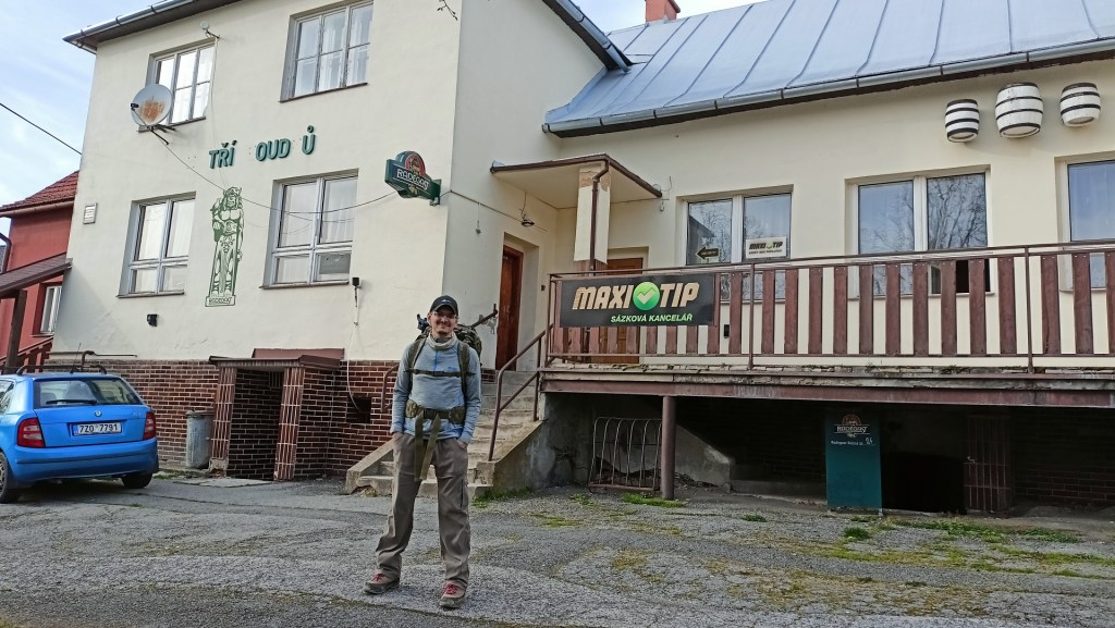 Ráno se probudím a přímo nad sebou vidím ty tenké 25 metrové smrky, jak se v tom šíleném větru ohýbají u špičky možná až o 4-5 metrů do stran. Trochu jsem dostal strach, tak budím Zuzku (asi poprvé v životě, co jsem ji budil já 😃 ), že musím jít, ať to na nás nepopadá 🙂 Nasnídali jsme se a vyrazili směr Francova Lhota, kde jsme skončili minulou etapu. Dva kiláčky z kopce do vsi. Tam jsme dali malou pauzu a vyrazili už po asfaltu směr Pulčín a na Pulčínské skály. U parkoviště jsme potkali známé. Chvilku jsme pokecali u auta, následně jsme si dali malé občerstvení v místní hospodě a vyrazili ke skalám. Netušil jsem, že tak velké skály tady vůbec jsou. Výstup nahoru byl náročnější, s přidržováním řetězů, naštěstí bez batohů, které jsme nechali v místním táboře/kempovišti. Shora byl parádní výhled. Krátký okruh přes skály zase zpět ke kempovišti. Tam jsme si dali “oběd” v podobě zbytků svačin, co jsme měli nachystáno na cestu a vydali se k dalším skalám, tentokrát Čertovým do Lidečka, kde byl zároveň i konec našeho jedno + 2x půldenního putování po hranici. V místní restauraci jsme si dali konečně pořádný oběd a pivo a odsunuli jsme se k autobusu. Ukrojili jsme dalších 42 km. Celkem máme 293 kilometrů, takže už nám chybí jen nějakých cca 1700 😀